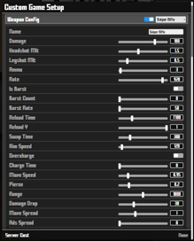 NOTE: Entering unrealistic weapon config(eg: Akimbo Mode for Sniper), will not work, the Error "Invalid Config" will be displayed, and the server will not be able to start.